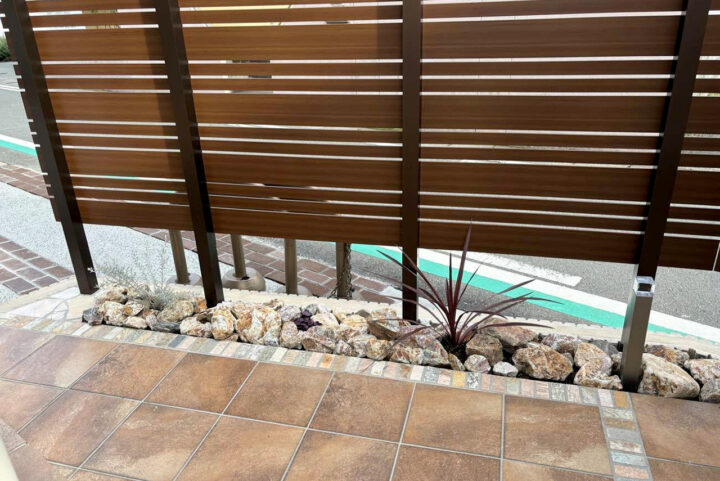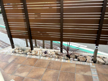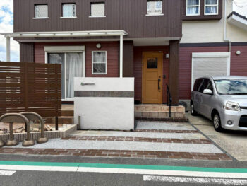| 10年前に外構とお庭の工事をさせていただいたお客様で、今回は、お子様が社会人になられるとのことで、車庫増設のための外構リフォームと外壁塗装をさせていただきました。以前は、お子様も小さかったのでセミクローズの外構でしたが、レンガをメインにしたアプローチに変更し、お庭のパーゴラも、風に強いLIXILの「テラスVS」に変更。プライバシー対策のフェンスも120幅と45幅を組み合わせたデザインのものを施工しました。極力残した思い出のタイルテラスの前には、TOYO工業の和石と植栽を組み合わせた花壇を。既存のタイルと色味もあっていい感じになりました。門塀にはアクセントとして、名古屋モザイクの「パヴォーネ」を採用。光があたるとキラキラしてきれいです。 |