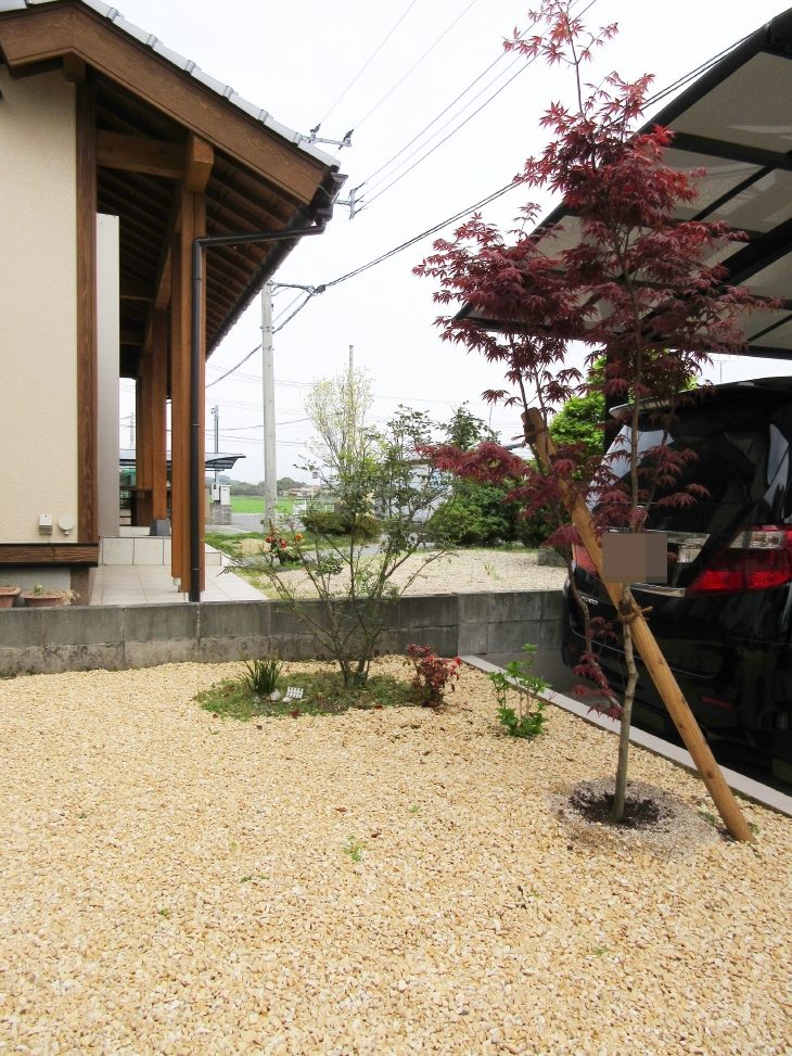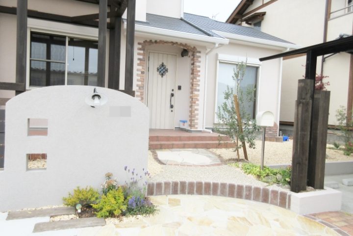 | 車庫拡大のために既存のブロックを解体することになり、せっかくなら外壁も塗装して雰囲気を一新しましょう…!! …と、お話が膨らんでお家と一体感のある外構リフォーム工事となりました。 また、既存物のポスト・表札・一部のアプローチは再利用できました。思い出の残る品々を残せてよかったです。 |