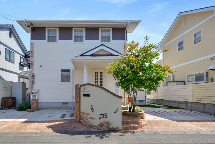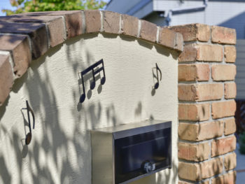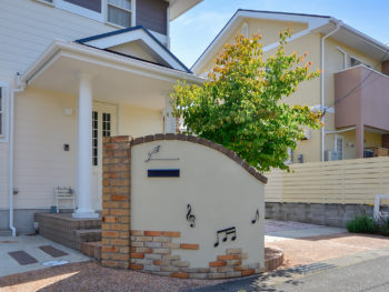 | 外壁や屋根が汚れ、門塀の雨垂れも気になってとご相談いただきました。特に2階の窓付近の汚れが目立っている状況でした。今までの汚れ方を見て、2階の窓まわりは汚れの目立ちにくい色が良いと判断し、アイボリーと濃いブラウンのツートンカラーで塗装しました。ブラウンを入れることで少しシックになり落ち着いた印象でイメージチェンジになりました。レンガと音符のデザインが可愛い門塀も、外壁と同じ色で塗装し、高圧洗浄をすることでレンガもとても綺麗になりました。 |