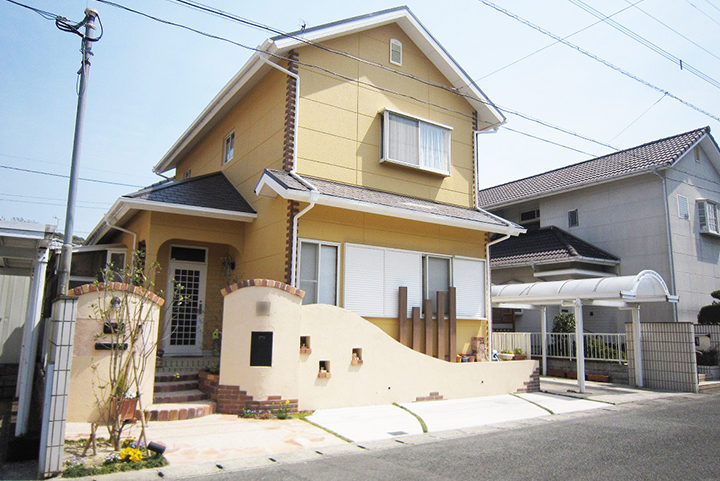 | 長年の汚れが付着し、外壁の汚れが目立つようになってきたので外壁塗装をしたいのと同時に、家のイメージを明るく変えたいとのご要望でした。 玄関門を洋風で可愛らしいデザインに一新し、外壁も門のデザインに合わせて暖色系に仕上げました。 また、屋根の激しい劣化も見受けられたので、屋根のメンテナンスも行い、綺麗に洗浄し塗装しました。 |